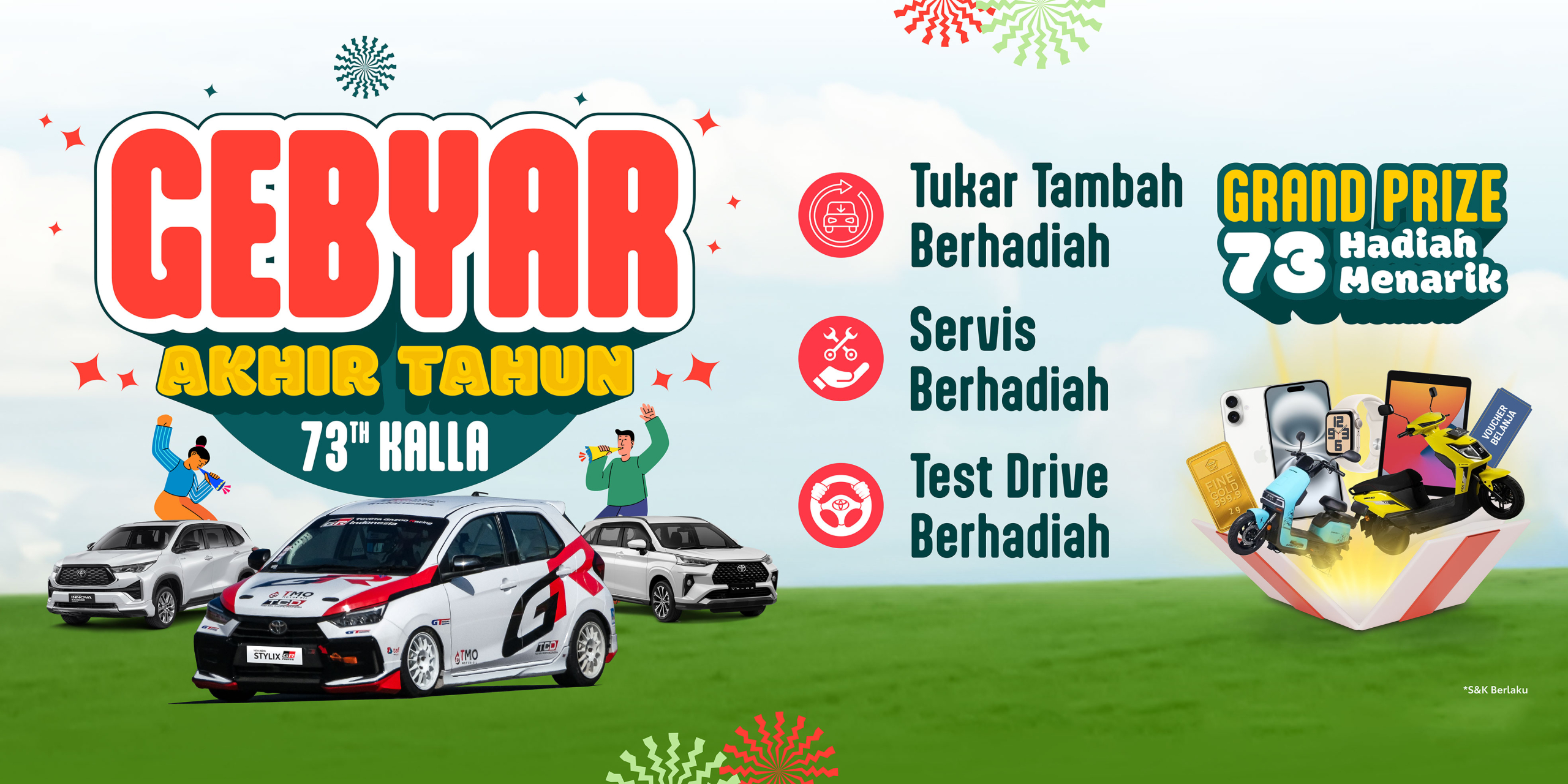 Kalla Toyota Kab. Bone – Dalam rangka memperingati hut 73th kalla, kalla toyota akan melakukan gebyar akhir tahun promo   Gebyar akhir tahun dalam rangka 73th kalla, akan ada promo tukar tambah berhadiah, servise berhadiah dan masih banyak lagi.. segera... selengkapnya